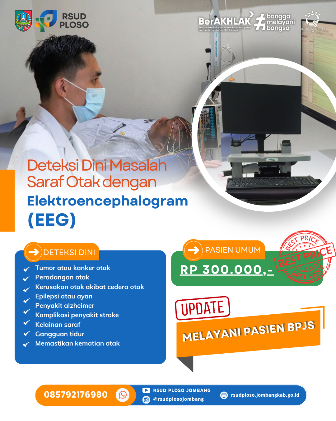 Sementara itu, untuk layanan EEG (pemeriksaan aktivitas listrik otak), RSUD Ploso sudah melangkah lebih jauh dengan status yang telah lolos kredensial BPJS, sehingga telah siap melayani pasien jaminan kesehatan nasional.